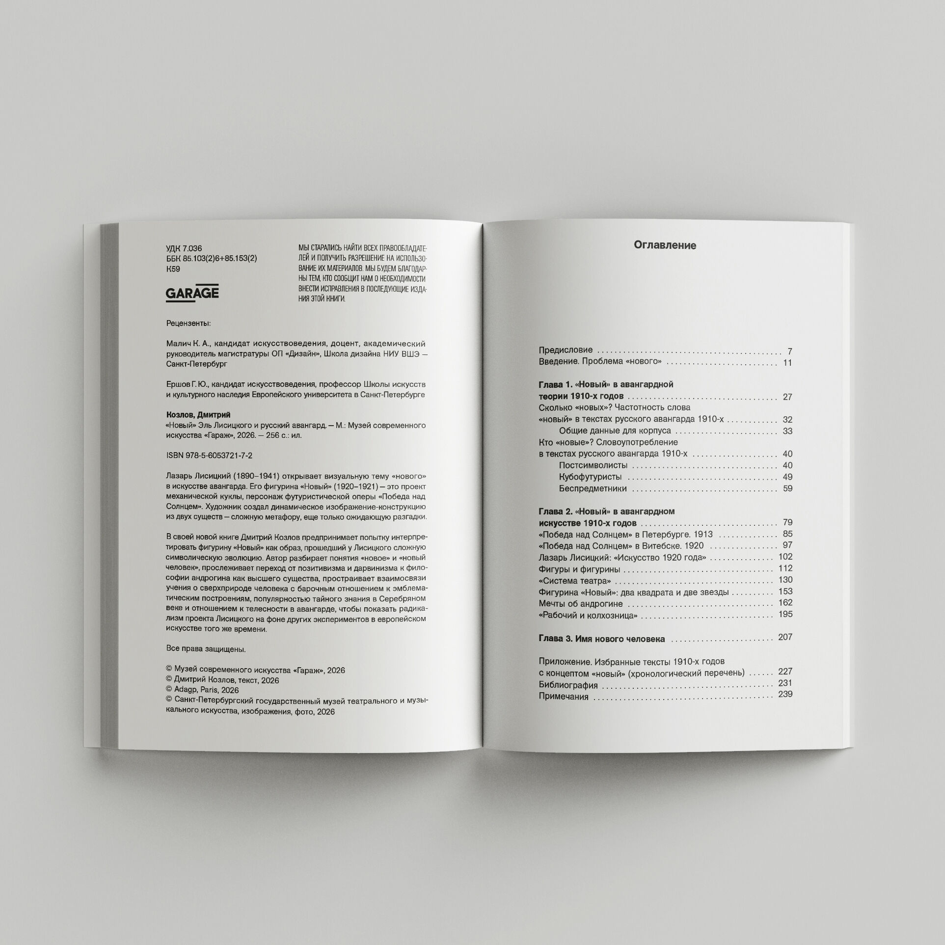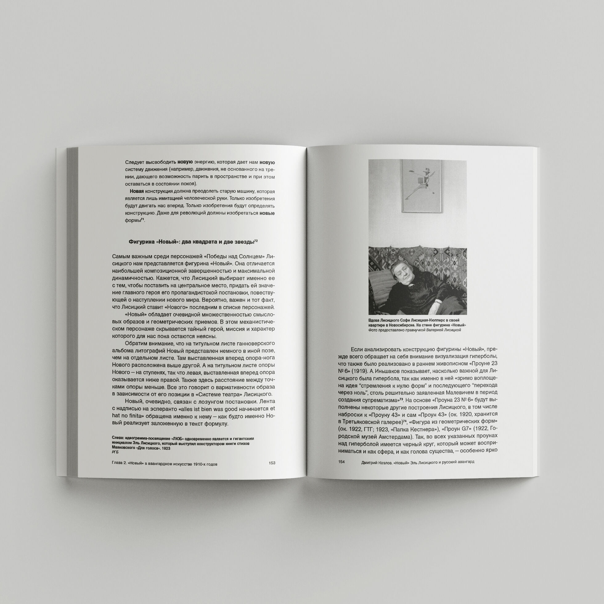 В своей книге Дмитрий Козлов предпринимает попытку интерпретировать фигурину «Новый» в качестве образа, прошедшего у Лисицкого сложную символическую эволюцию. Автор разбирает понятия «новое» и «новый человек», прослеживает переход от позитивизма и дарвинизма к философии андрогина как высшего существа, простраивает взаимосвязи между учением о сверхприроде человека и барочным отношением к эмблематическим построениям, между популярностью тайного знания в Серебряном веке и отношением к телесности в авангарде, чтобы показать радикализм проекта Лисицкого на фоне других экспериментов в европейском искусстве того же времени.