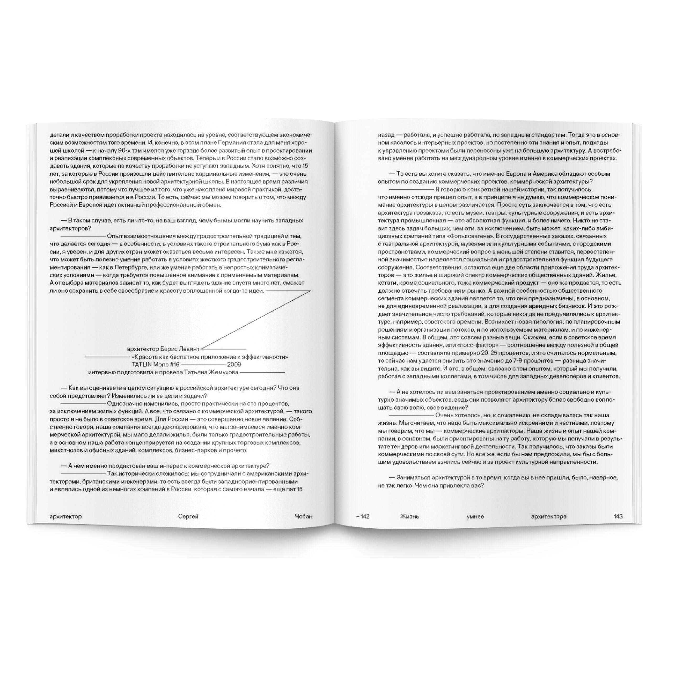 Корбюзье говорил: «Жизнь умнее архитектора». Эти слова великого зодчего легли в основу выставки издательства TATLIN с одноименным названием представленной рамках ежегодной Международной выставки архитектуры и дизайна «АРХ МОСКВА» в мае 2011 года. Ее куратор Эдуард Кубенский, проанализировал интервью, данные героями журнала TATLIN MONO и выделил наиболее яркие цитаты напечатав их на белых футболках. Спустя 14 лет количество интервью увеличилось в три раза, что стало поводом объединить их в одно издание посвященное 20-летию журнала. В данном издании представлены полные тексты интервью с архитекторами, проиллюстрированные самыми яркими цитатами из них (вырванными из контекста) оформленные в особом графическом ключе.