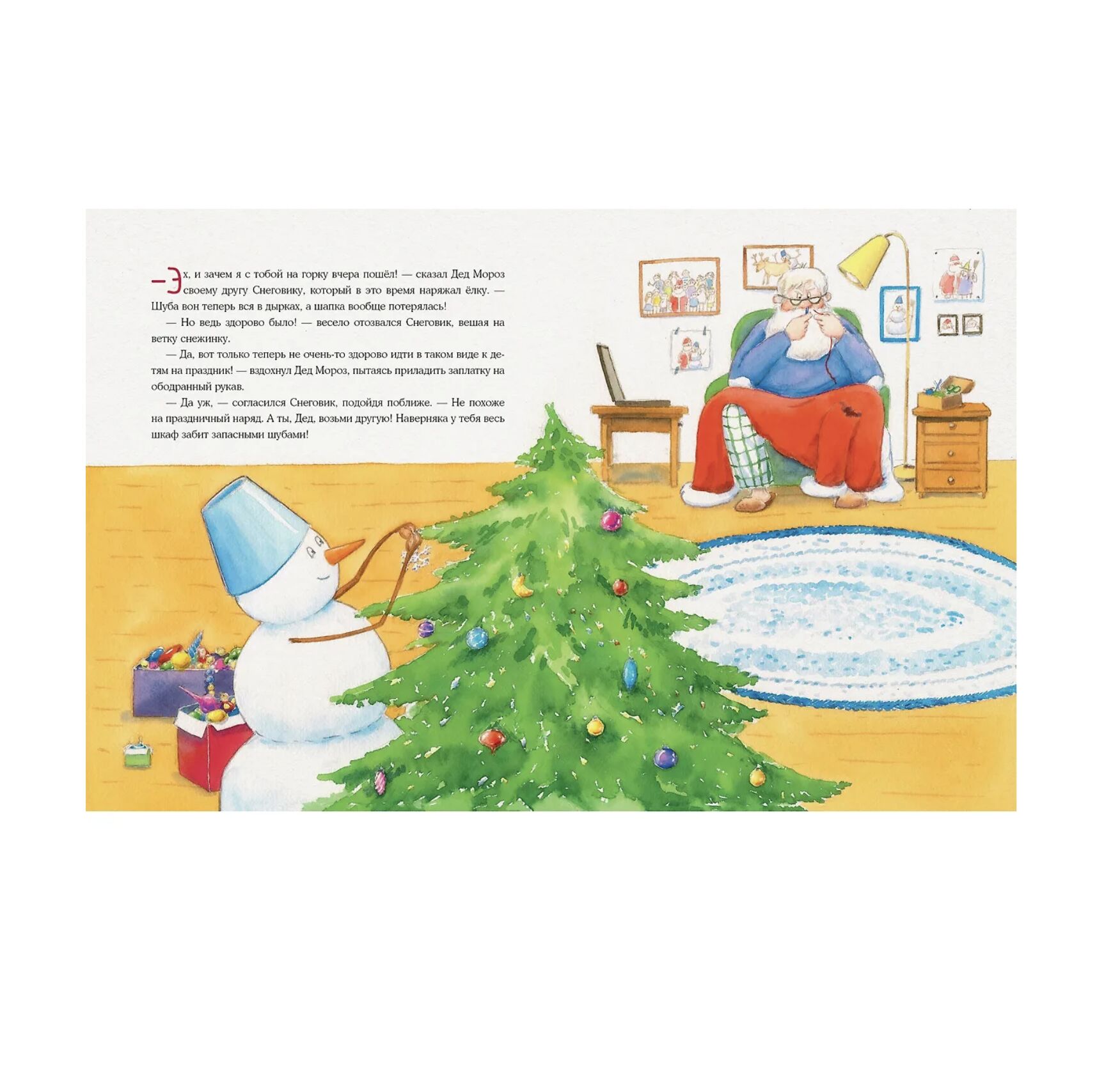 Скоро Новый год, а Дед Мороз в растерянности - вчера он катался с горки со своим другом Снеговиком и порвал шубу, а шапку и вовсе потерял! Что теперь надеть на праздник? Попросил о помощи заморских коллег. Те прислали свои костюмы, но Деду Морозу ни один не подошёл - непривычные, неудобные. И в лавке маскарадных костюмов ничего подходящего не нашлось- ну не Оленем же одеваться... Кто же поможет Деду Морозу подготовиться к празднику?